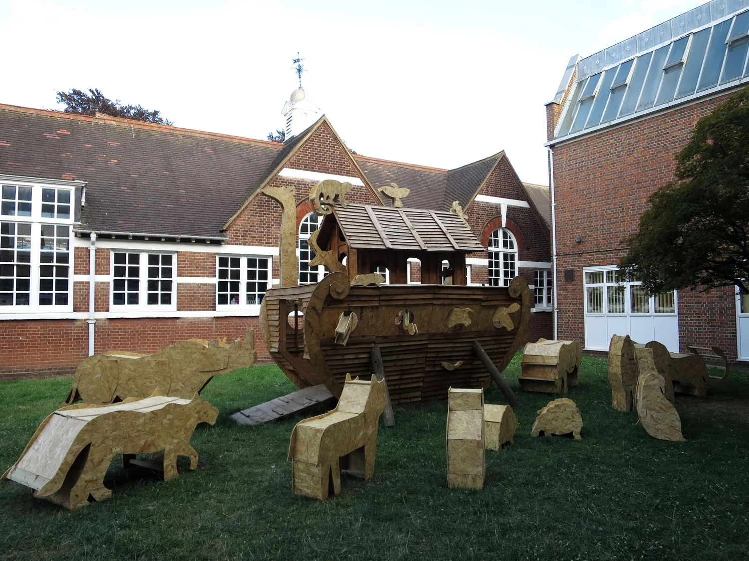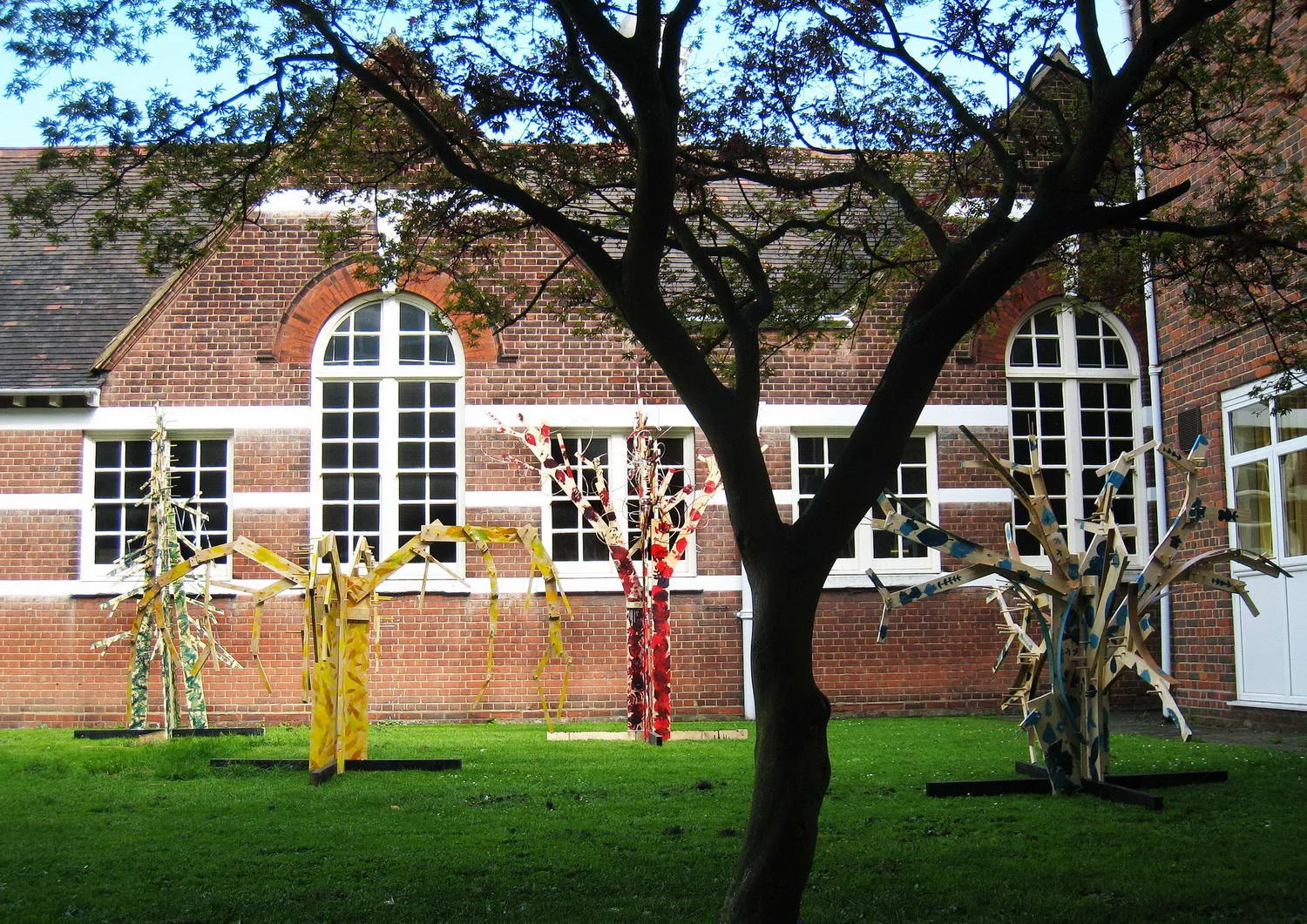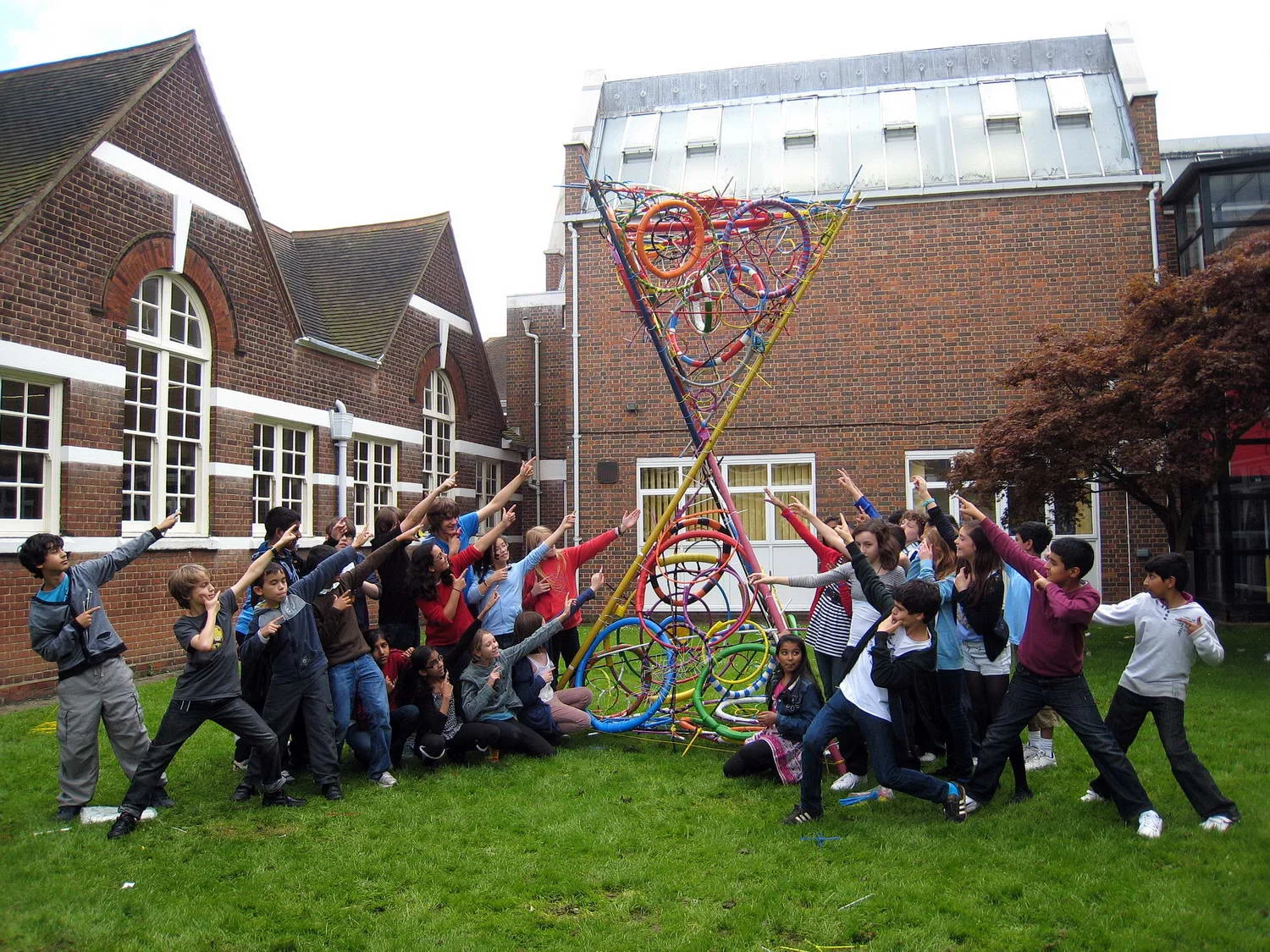 Every year since 2009, I have run a two day workshop with year seven pupils at The Latymer Grammar School in Edmonton. Two groups of thirty pupils take part, working on consecutive days constructing a sculpture (or sculptures)to then be shown in the central courtyard until the following year when it is replaced by a new one.